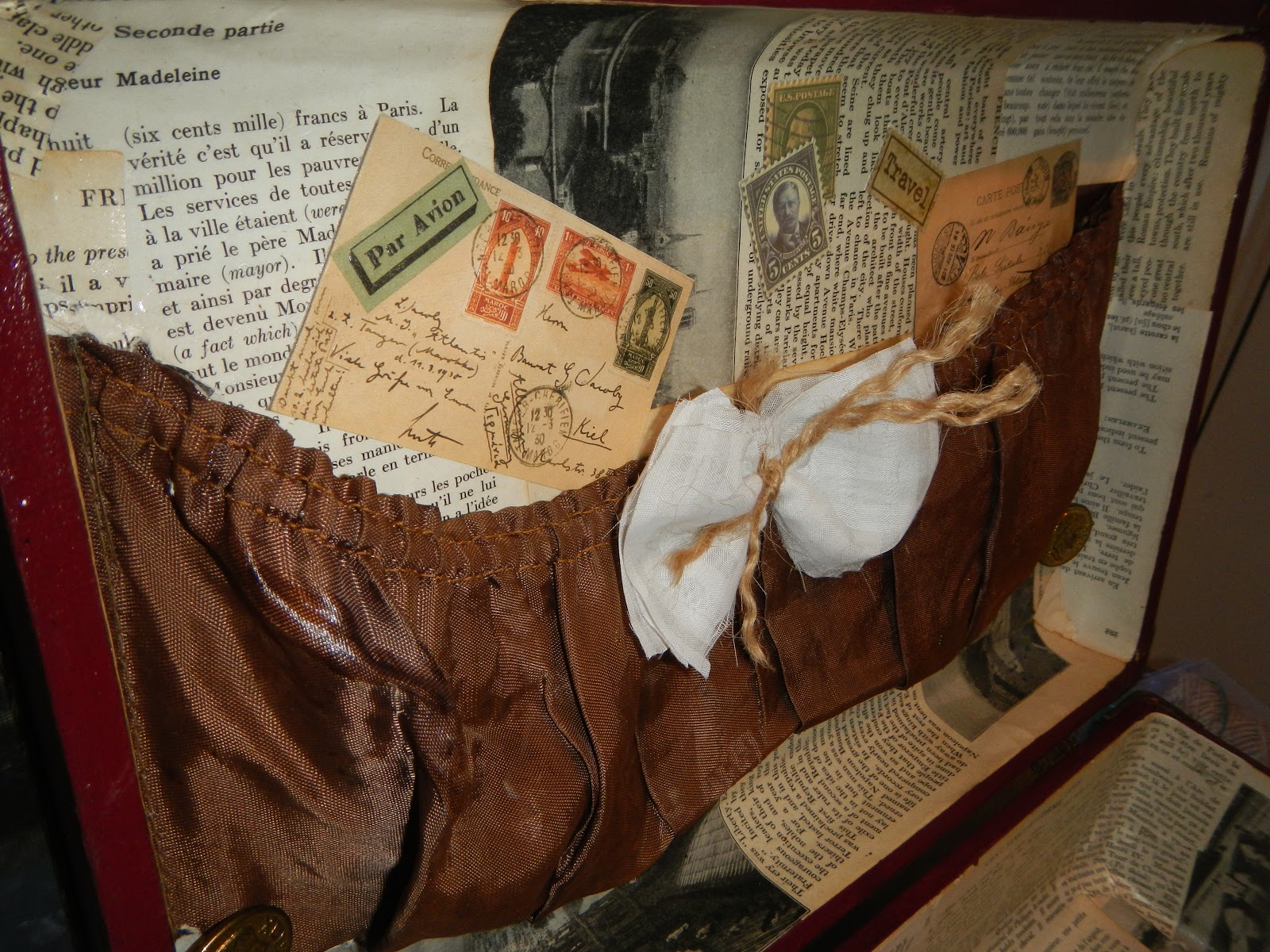 I used a vintage french school book to line the inside and added a bit of charm with some postcard stickers, a bow and some twine.